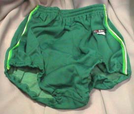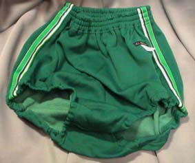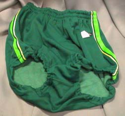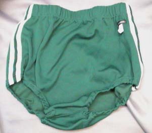 型番不明(別注品だと思われます) ノーコン・ロレルグリン ライン入りスクールショーツ ポリエステル100% ライン・ポリ100% 丈が長いです。 G1504シリーズのラインは身頃と あわせ縫いしているのですが、 これはノーコンのブルマ(無地)の 上にラインを縫い付けています。 |