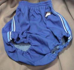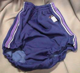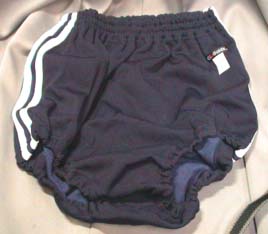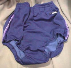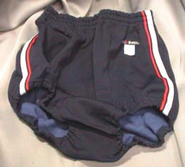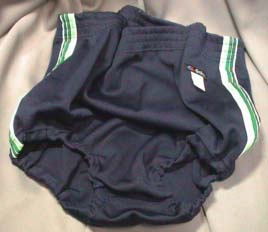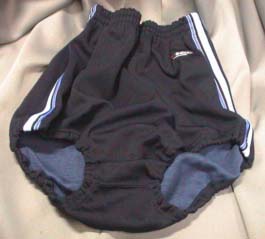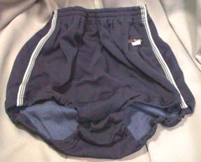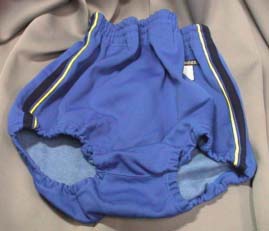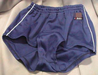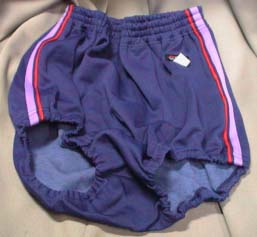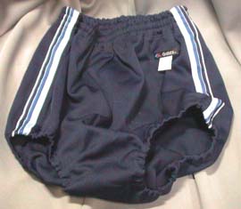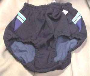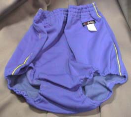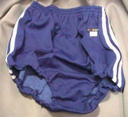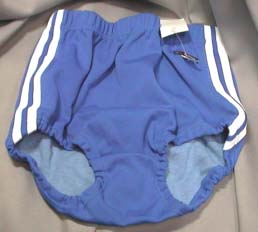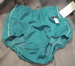 型番不明(別注品だと思われます) ノーコン・ライトブルー ライン入りスクールショーツ ポリエステル100% ライン・ポリ100% 丈が長いです。 G1504シリーズのラインは身頃と あわせ縫いしているのですが、 これはノーコンのブルマ(無地)の 上にラインを縫い付けています。 |