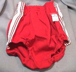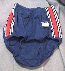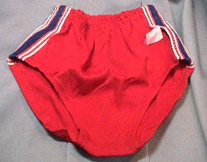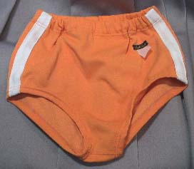 型番不明(オレンジ) ポリエステル80% 綿20% ヒットユニオンのブランド である”ジャックマン”の ぶるま。 お尻のところにポケットが ついています。 別注品の可能性が大 です。 |