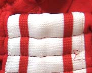 670-N(レッド) ナイロン100% ライン・ポリ100% ばれぶるのように、左右に 折り目がついています。 |